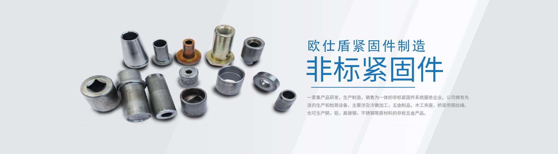 宜興市歐仕盾緊固件制造有限公司坐落在太湖之濱——無錫宜興。是一家集產品研發,生產制造,銷售為一體的非標緊固件系統服務企業。公司擁有 的生產和檢測設備,主要涉及冷鐓加工,五金制品。也可生產銅,鋁,高碳鋼,不銹鋼等原材料的非標五金產品。公司創始人憑借著對技術的狂熱追求以及數十年對產品工藝的積累,在五金制造行業占據了一席之地;對于客戶的需求高、中、低端批量五金件有著特有的加工工藝及成本管控,為客戶做到真正的成本節約;可對于客戶新產品的研發作出及時的配合調整!我的優勢——您可以直接和技術迅速準確的我們描述您對零件的需要,我們的精準服務將給您帶來驚喜!
